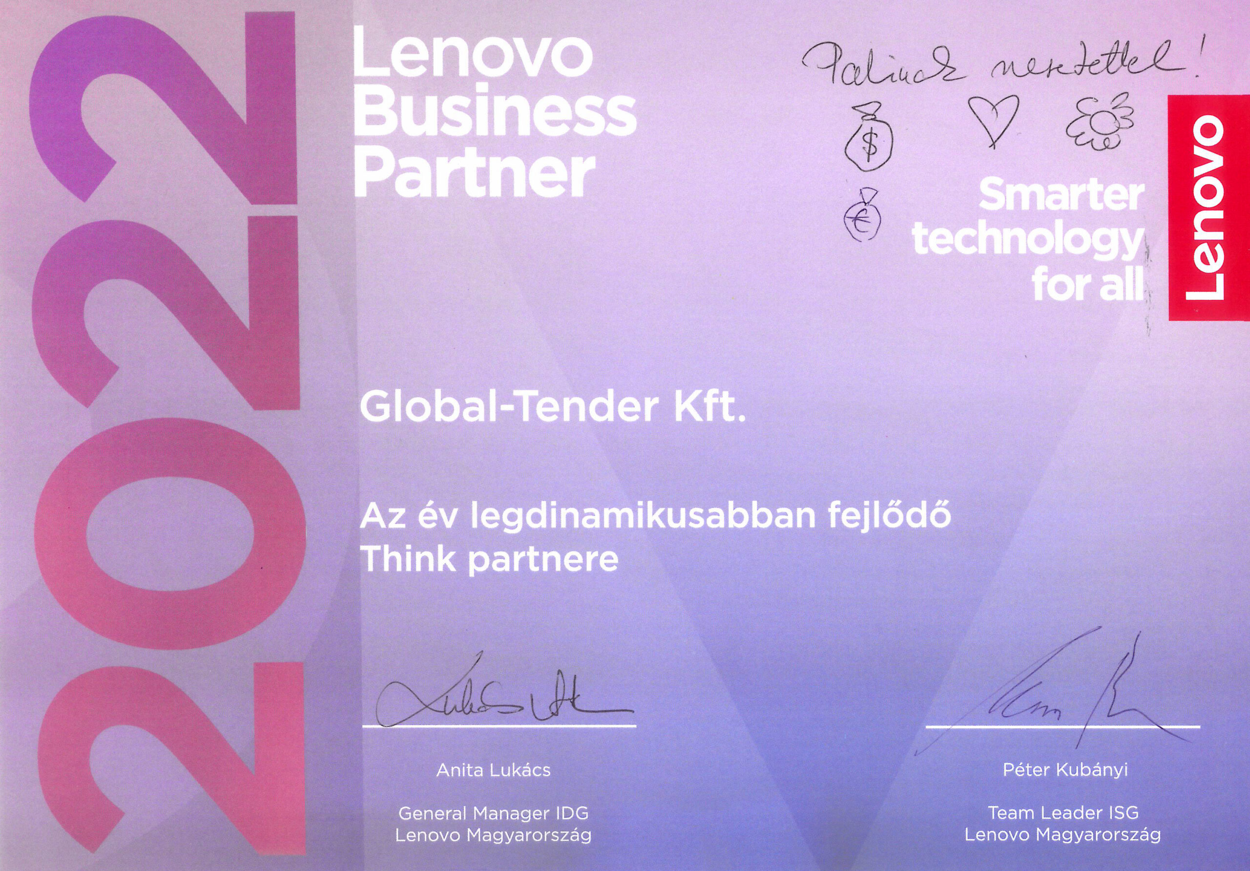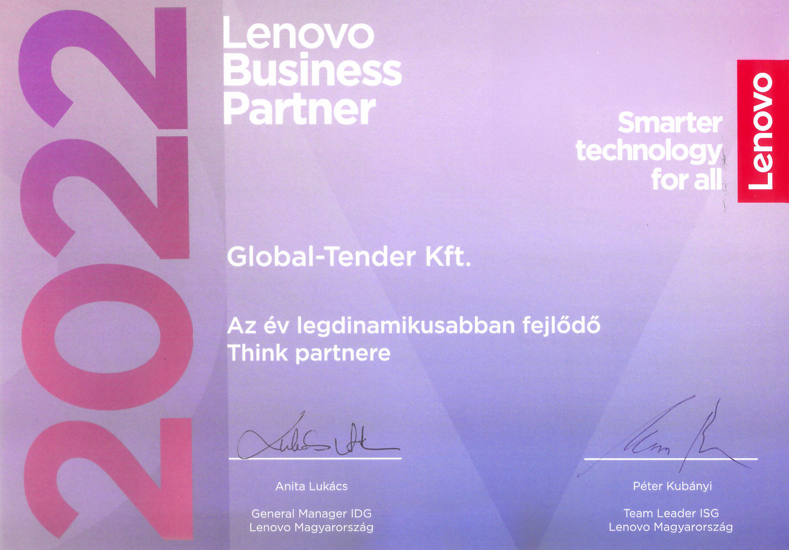 A Lenovo ezt a díjat azoknak a partnereknek adja, akik kiemelkedő növekedést érnek el a Think termékcsalád értékesítésében. Ez az elismerés megerősíti, hogy gyorsan és hatékonyan támogatjuk üzleti ügyfeleink beszerzési folyamatait.