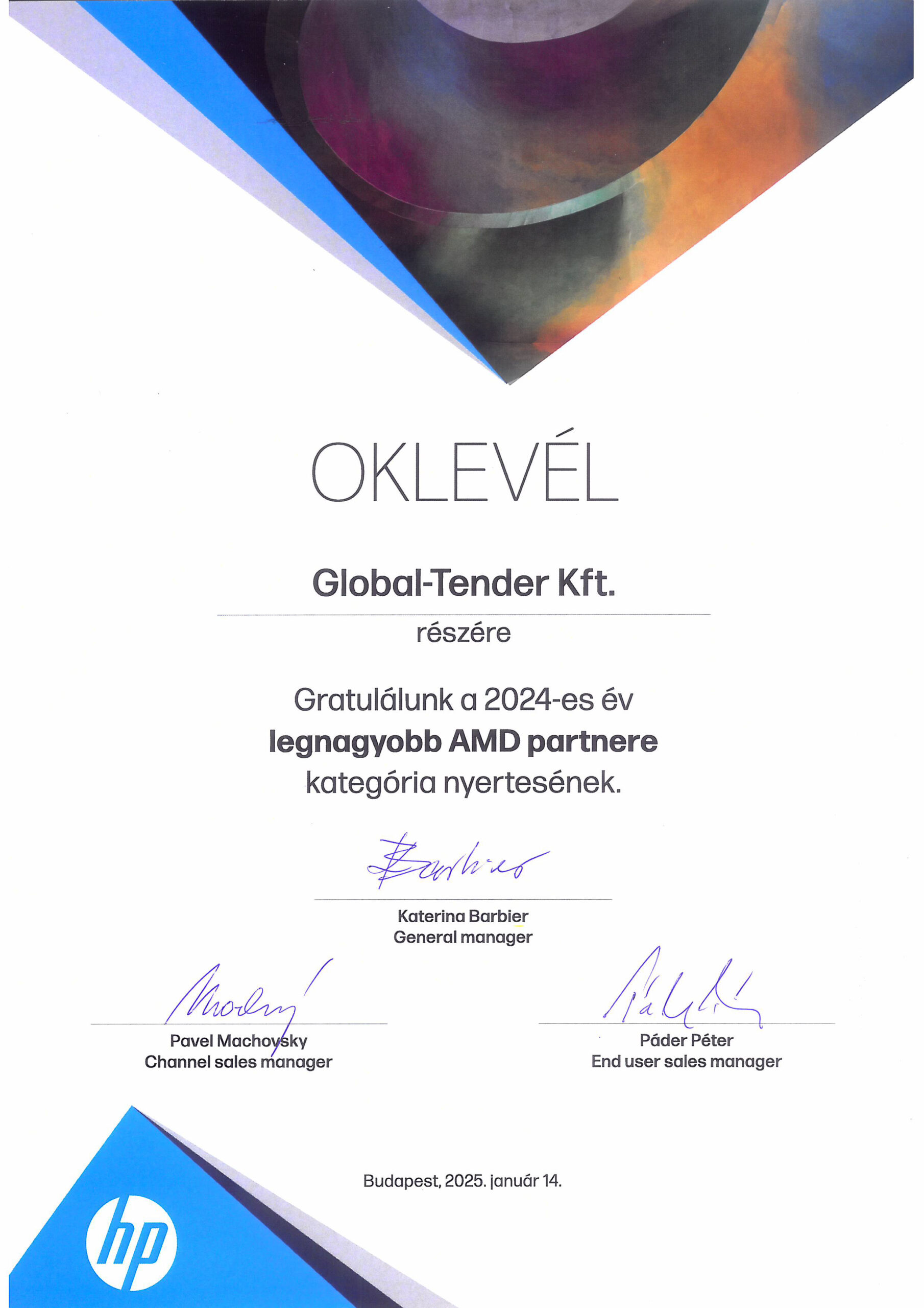 A HP AMD tanúsítvány azt a szakmai bizalmat jelzi, amely alapján a HP következetesen megbízható és felkészült partnerként számít ránk. Ez többek között gyorsabb ajánlatadást, közvetlen gyártói támogatást és jól tervezhető árazást eredményez ügyfeleink számára.